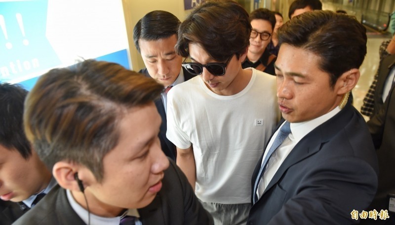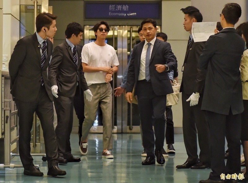 韓星孔劉出道16年昨首度來台,29日將在新莊體育館會粉絲,並將今年的海外首場見面會獻給等待他已久的台粉,昨晚他身穿白T搭灰長褲、墨鏡,一身休閒裝扮帥氣抵台,在10名保鑣的護送下走VIP通關,他看到媒體及粉絲接機,也親切微笑揮手致意,隨後搭乘商務中心電動車快閃離開,短短30秒的時間,就讓同機旅客及機場工作人員興奮不已,據悉孔劉的父母也低調隨行抵台。
